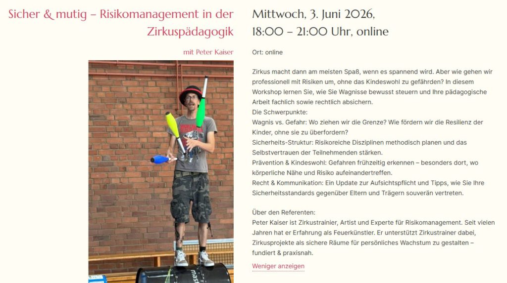 „Sicher & mutig – Risikomanagement in der Zirkuspädagogik“